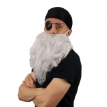 La longue barbe blanche et le cache-œil noir créent un personnage de pirate marquant sans maquillage compliqué.