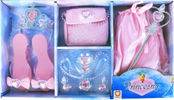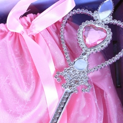 Transformez-vous en véritable princesse en un instant. Ce set rose élégant offre tout ce dont vous avez besoin pour un look enchanteur – de la couronne et du sceptre aux bijoux assortis et au sac à main. Tous les éléments sont coordonnés dans des tons de rose et ornés de strass scintillants, qui apportent une touche d’exception à chaque costume.