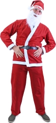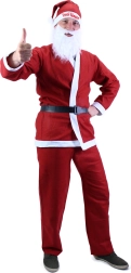 Ce costume comprend tout ce dont vous avez besoin pour le look classique du Père Noël : veste, pantalon, bonnet et ceinture.