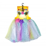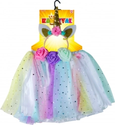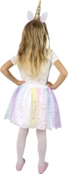 Transformez votre enfant en une licorne magique avec ce costume coloré comprenant une jupe tutu et un serre-tête licorne. Cet ensemble est idéal pour les enfants qui veulent vivre de fabuleuses aventures en jouant. La jupe est ornée de tulle coloré décoré d’étoiles et est conçue pour s’ajuster facilement grâce à sa taille élastique.