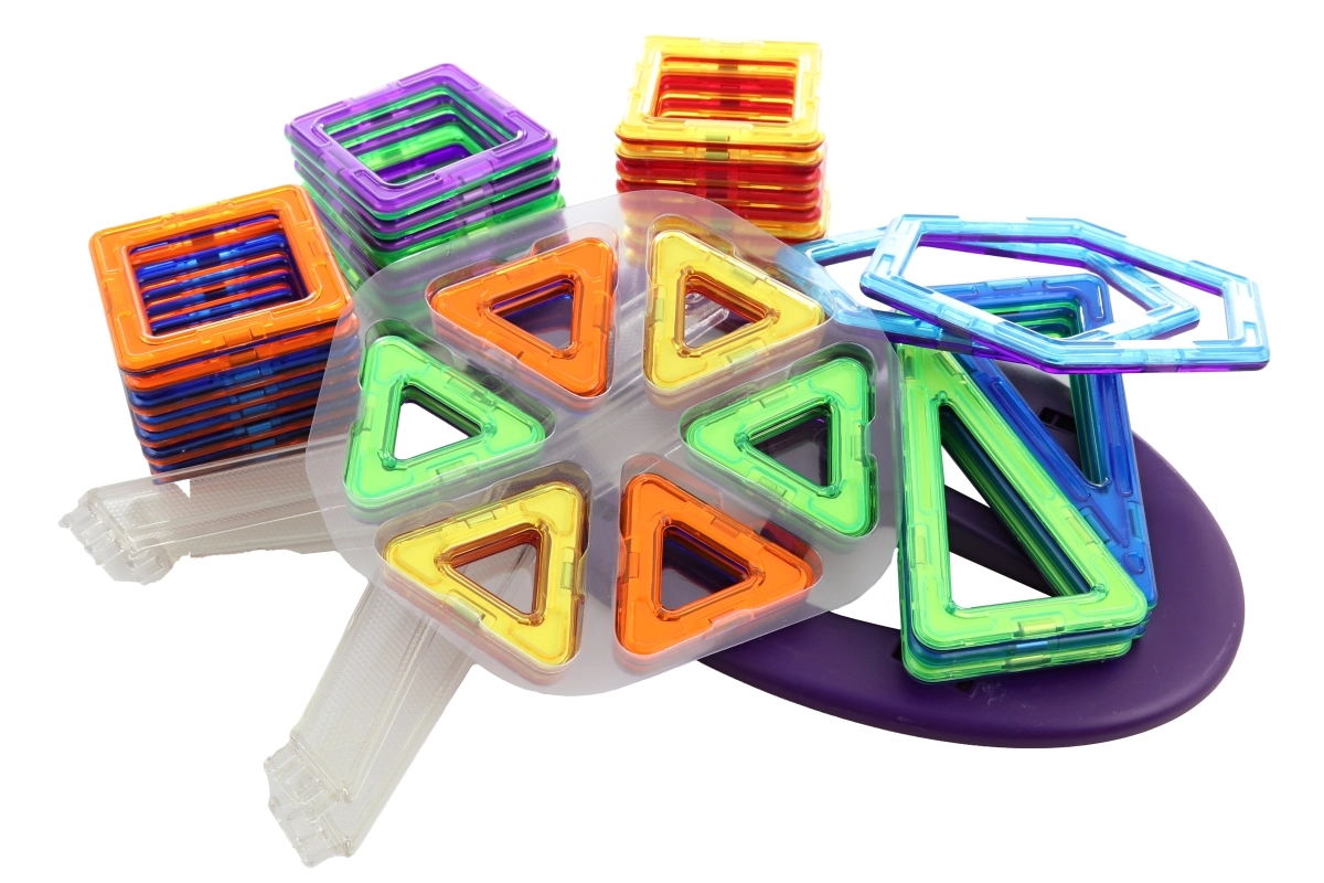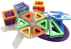 Le jeu de construction magnétique comprend 72 pièces de différentes couleurs et formes, y compris des autocollants amusants. Emballé dans une boîte. Dimensions de l’emballage : environ 40 x 29 x 6 cm. Âge 3+.