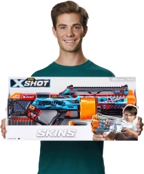 Entre dans la bataille avec le X-Shot Skins Last Stand, qui combine performance, style et fun. Grâce au barillet rotatif automatique, tu tires 14 fléchettes en un instant, tandis que la conception ergonomique et la poignée tactique assurent une prise en main sûre en toutes situations. L’édition Skins propose 4 “skins” uniques, pour choisir le look qui te ressemble.