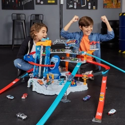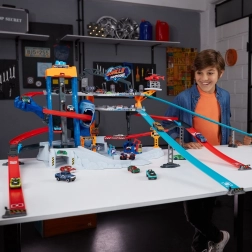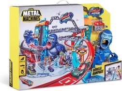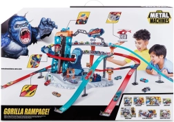 La piste de course Metal Machines Gorilla Garage est livrée avec des stations de réparation et une plate-forme pour hélicoptère de sauvetage, qui peuvent transporter vos véhicules. Cependant, un gorille géant rôde désespérément autour, prêt à attaquer ! Pouvez-vous traverser ses énormes mâchoires et vous échapper à temps ?