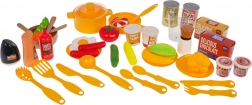 Poêle, casserole, assiettes, couverts, épices et aliments factices – tout est soigneusement assorti pour des heures de jeu créatif.