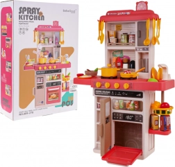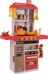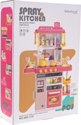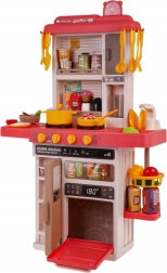 Cette cuisine interactive offre aux enfants une expérience de cuisine réaliste. En tournant les boutons, des sons de cuisson et de friture se font entendre et les brûleurs s’illuminent. L’un des brûleurs génère en plus une douce vapeur sécurisée, renforçant l’impression d’une vraie cuisson. On peut verser de l’eau dans le robinet pour que les enfants rincent la vaisselle comme dans un véritable évier.