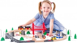 Ce circuit de train en bois offre des heures de divertissement et d’apprentissage. Le set comprend des rails colorés, un pont, des arbres, des véhicules et des panneaux de signalisation qui encouragent le jeu imaginatif et la créativité. La vedette est la locomotive à pile, qui circule en douceur sur la voie et incite les enfants à explorer de nouveaux tracés.