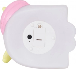 La lumière est alimentée par 3× LR44 (incluses) avec une autonomie d’environ 20 heures. Le compartiment à piles sécurisé est fixé par une vis pour une utilisation sereine par les enfants. Sa surface lisse et ses couleurs pastel s’intègrent parfaitement dans toute chambre d’enfant.