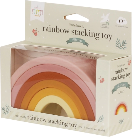 Cet arc-en-ciel empilable en silicone de qualité alimentaire stimule la motricité fine, la logique et l’imagination. Grâce à sa matière souple et résistante, il convient à différents âges, y compris aux bébés. À utiliser à la maison, dans le bain ou dehors dans le bac à sable.