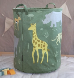 Spacieux panier de rangement pour jouets au motif d’animaux de la savane, offrant un volume de 63 l pour faire rapidement de l’ordre dans la chambre d’enfant. Grâce à la enduction intérieure en PE, il convient aussi pour le linge, se plie facilement et sert également de décoration stylée.
