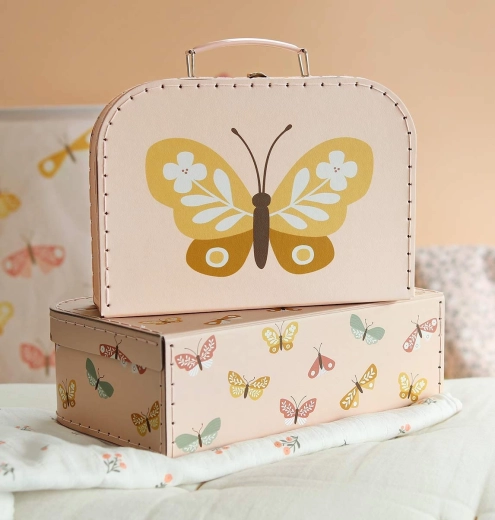 Pratique et élégant, ce set de deux valisettes dans un ton beige délicat avec des illustrations colorées de papillons apporte ordre et joie au quotidien. La grande et la petite valisette accueilleront jouets, crayons, cahiers, petits trésors ou serviront de boîtes de rangement décoratives dans la chambre d’enfant.