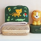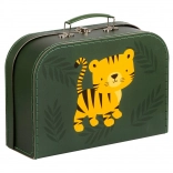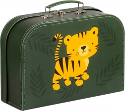 Adorable set de deux valisettes pour enfants au motif de tigre et de jungle, idéal pour ravir les petits explorateurs. Il offre un carton résistant avec surpiqûres en polyester, une poignée et une fermeture métalliques et deux tailles différentes pour trier facilement jouets, trésors et fournitures créatives.