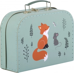 Découvrez un charmant ensemble de deux valisettes illustrées avec un renard, une chouette et d’autres amis de la forêt. Grâce aux deux tailles, vous organisez facilement jouets, crayons et petits trésors. La structure en carton résistant avec surpiqûres de qualité supporte un usage quotidien, tandis que la poignée et le fermoir métalliques assurent un transport confortable et une fermeture sûre.