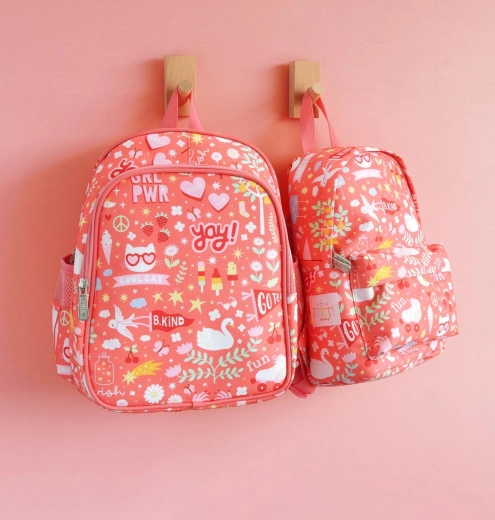 Ce sac à dos corail rose au motif joyeux ravira les petits voyageurs. Grâce aux bretelles rembourrées, à la sangle de poitrine antiglisse et au panneau dorsal rembourré et respirant, il se porte confortablement toute la journée. La poche avant isotherme garde le goûter et les boissons frais plus longtemps, tandis que les poches latérales sont idéales pour une bouteille.