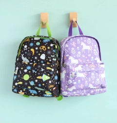 Adorable petit sac à dos pour enfants dès 2 ans avec motif de l’espace. Il offre une grande compartment principal et une poche frontale zippée pour le goûter et les jouets. Bretelles rembourrées, dos matelassé confortable et sangle de poitrine assurent confort et stabilité. Léger et robuste en polyester avec imprimé coloré, facile d’entretien.
