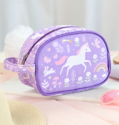 Cette adorable trousse de toilette rose avec motif de licornes et d’arc-en-ciel garde toutes les affaires d’hygiène des enfants bien organisées. Grâce à sa poche principale spacieuse, elle peut contenir shampooing, savon, brosse à dents, dentifrice et autres petits objets. La boucle pratique permet de la transporter confortablement ou de l’accrocher.