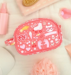 Trousse de toilette pour enfants, à la fois stylée et fonctionnelle, avec un design ludique « GRL PWR », des cœurs et des motifs joyeux. Grâce à ses dimensions compactes de 20,5 × 14 × 9,5 cm, elle se glisse dans un sac à dos ou une valise tout en offrant suffisamment de place pour toutes les affaires de toilette.