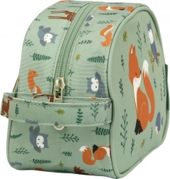 Adorable et spacieuse trousse de toilette au motif de petits amis de la forêt, idéale pour les excursions, les colonies et les vacances. Elle offre un grand compartiment pour toutes les affaires d’hygiène et une poignée pratique pour un transport facile et pour l’accrocher.