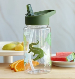 Cette bouteille stylée à motif de crocodiles aide les enfants à respecter leur hydratation. Grâce à son bouchon solide et à la paille, boire est facile et la bouteille reste sans fuites. Les parois transparentes permettent de suivre la quantité de liquide et ses dimensions compactes se glissent dans n'importe quel sac d'enfant.