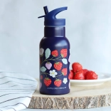 Adorable motif de fraises et volume de 350 ml dans une bouteille légère que les enfants peuvent porter facilement.