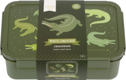 Pratique, la boîte à goûter imprimée de crocodiles est idéale pour l’école comme pour les sorties. Elle dispose d’un couvercle à clip étanche à l’air et d’un récipient amovible avec deux compartiments, pour que les encas restent frais et bien organisés toute la journée.