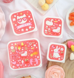 Découvrez l’ensemble pratique de 4 boîtes à goûter d’A Little Lovely Company, dont les différentes tailles conviennent parfaitement au déjeuner, aux fruits, aux légumes et aux petites douceurs. Les boîtes ont un imprimé ludique coordonné et peuvent s’emboîter facilement, occupant ainsi à la maison presque aucune place.