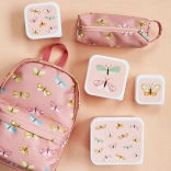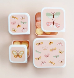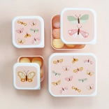 Le set est conçu pour un conditionnement des aliments clair et hygiénique. Chaque boîte présente le même motif ludique de papillons et s’emboîte dimensionnellement dans la suivante, ce qui permet de gagner de la place à la maison. Elles sont parfaites pour les fruits, un biscuit, un sandwich ou de petits snacks.