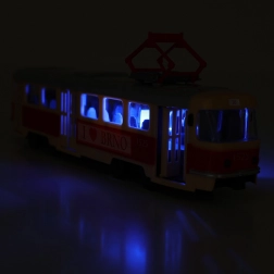 Un tramway T3 pour enfants au design BRNO qui offre une expérience réaliste des transports urbains. À l’ouverture des portes, des annonces d’arrêts en tchèque se déclenchent et une lumière bleue s’allume. Le modèle de 28 cm roule en roue libre, possède des portes ouvrantes et est fabriqué en plastique résistant. 3× piles LR44/AG13 sont incluses dans l’emballage.