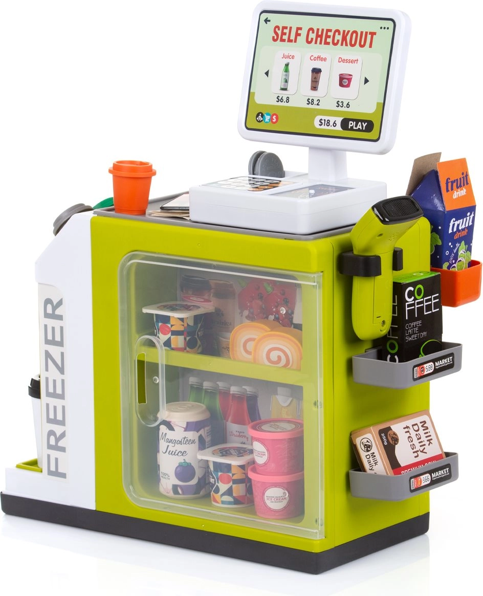 Ce set de jeu de supermarché réaliste transforme la chambre des enfants en petit centre commercial. Grâce à la caisse en libre-service, au scanner, à la carte, aux pièces et aux billets, les enfants apprennent comment se déroulent les achats, le paiement et l’utilisation d’une caisse. Les sons interactifs et les effets lumineux favorisent la curiosité naturelle et un apprentissage ludique.