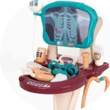Le chariot médical pour enfants Chipolino transforme chaque jeu en cabinet réaliste. Grâce au panneau de radiographie éclairé et aux pochoirs interchangeables (poumons, colonne vertébrale, main, ECG), les enfants s’initient aux examens de base et apprennent à reconnaître les parties du corps humain. Les effets lumineux et sonores intégrés renforcent l’atmosphère, éveillent la curiosité et soutiennent la concentration.