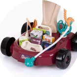 Le chariot est clairement organisé avec des étagères pour les instruments et comprend un large ensemble d’accessoires : stéthoscope, perfusion, masque à oxygène avec bouteille et d’autres outils indispensables aux petits médecins. Grâce aux roulettes et à ses dimensions compactes 58 × 42,5 × 32 cm, il est facile à déplacer et stable pendant le jeu.
