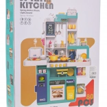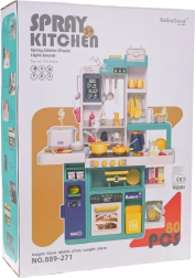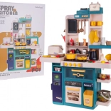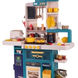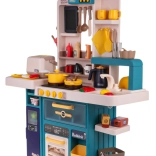 La cuisine interactive pour enfants offre un jeu réaliste avec des effets lumineux, des sons de cuisson et de friture, de vraies eaux courantes au robinet et une vapeur sûre provenant de la poêle, de la casserole et du cuiseur à riz. Un ensemble riche de 80 pièces stimule l’imagination, la motricité fine et la créativité des enfants dès 3 ans.