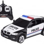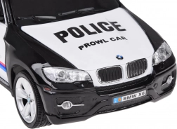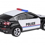 Ce modèle reproduit fidèlement une véritable voiture de police BMW X6 avec des détails authentiques, y compris l'insigne de la police et la bande lumineuse sur le toit.