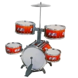 Comprend une grosse caisse avec pédale, deux petits et deux toms moyens, une cymbale, des baguettes en plastique et un tabouret. Idéale pour les petits musiciens.
