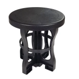 Tabouret en plastique noir avec pieds arrondis offrant confort et stabilité pendant le jeu. Léger et facile à transporter pour diverses utilisations.