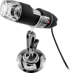 Ce microscope numérique avec connexion USB permet d’afficher des objets agrandis directement sur votre moniteur. Il est équipé de 8 LED lumineuses avec réglage de la luminosité sur le câble, garantissant une excellente visualisation des objets. Le grossissement va de x50 à x500, facilement réglable à l’aide de la molette sur le microscope. Le microscope crée des photos en résolution 6324x4742 ppi (après interpolation) et, grâce à la haute qualité du capteur, fournit une image nette et contrastée.