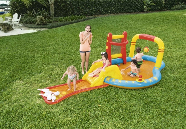 Offrez aux enfants un été plein de rires et de mouvement avec le centre de jeux aquatique gonflable BESTWAY. Il combine une petite piscine peu profonde, un toboggan amovible et des jeux amusants comme les quilles, le panier et le lancer d’anneaux. Grâce à l’asperseur intégré, jouer reste rafraîchissant même par forte chaleur. Installation facile, zone peu profonde sécurisée et riche assortiment d’accessoires garantissent un divertissement sans fin, un mouvement actif et une agréable fraîcheur pendant les journées d’été.