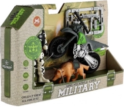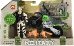 Moto, figurine de soldat, figurine de chien, armes et accessoires