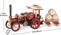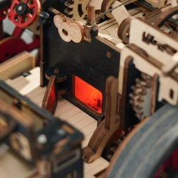 La maquette mécanique 3D en bois RoboTime machine à vapeur séduira tous les passionnés de technologie, de modélisme et de kits en bois ingénieux. Une fois assemblé, vous obtenez un modèle fonctionnel avec une boîte manuelle à trois vitesses, des roues en silicone et une remorque suspendue pivotant à 120°. L’éclairage LED dans le foyer et la cheminée crée une impression réaliste de combustion et de fumée, de sorte que le modèle ne se contente pas d’avoir l’air authentique, il fonctionne aussi comme une véritable machine à vapeur.