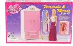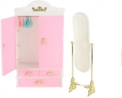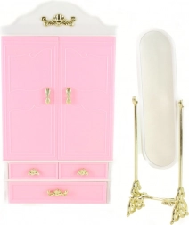Incluez dans votre jeu d'enfant l'armoire vestiaire et le miroir Glorie, qui viennent avec un design clair et une fonctionnalité pour ses poupées. Les enfants peuvent profiter du rangement des vêtements avec un soin approprié grâce aux cintres pratiques, tandis que le miroir ajoute une touche d'élégance à leur scène de jeu.