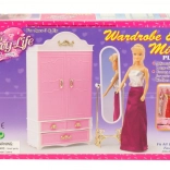 L'armoire vestiaire Glorie offre un espace pour ranger les vêtements de poupées avec des tiroirs et des portes ouvrables.