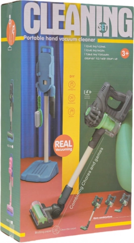 Le set de nettoyage pour enfants avec aspirateur est conçu pour les plus petits afin de leur offrir une vraie expérience de ménage. Il comprend un aspirateur avec fonction d’aspiration réelle et des accessoires permettant de collecter petites saletés et poussières. L’aspirateur peut être transformé en version à main pour un nettoyage détaillé.
