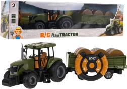 Tracteur vert télécommandé avec remorque est conçu pour les enfants à partir de 3 ans. Fabriqué en plastique de haute qualité, il possède des pneus en caoutchouc et une remorque amovible, offrant une expérience de jeu réaliste.