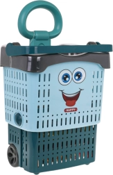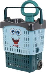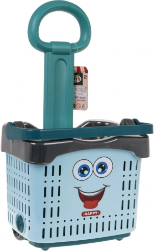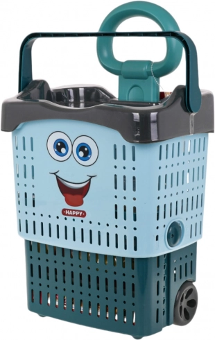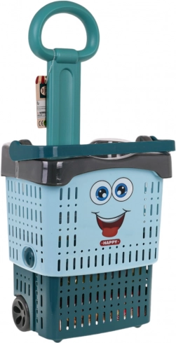 Chariot de courses pour enfants avec panier bleu et accessoires est le jouet idéal pour les enfants à partir de 3 ans. Avec ses couleurs vives et le sourire joyeux sur le panier, il offre un jeu réaliste grâce à une poignée réglable et un déplacement facile grâce aux roues.