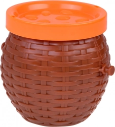 Le panier en plastique avec couvercle est excellent non seulement pour le jeu, mais aussi comme espace de rangement pour les singes après la partie.