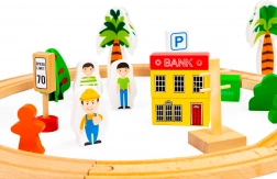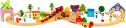 Ce set de train en bois de la marque Ecotoys est un ensemble complet d’éléments de jeu, comprenant 74 pièces comme des véhicules, des panneaux de signalisation et des bâtiments que les enfants peuvent assembler librement en une mise en scène attrayante. Il est conçu en pensant à la sécurité des enfants, à partir de matériaux de qualité. Grâce au grand nombre d’accessoires, les enfants peuvent jouer pendant des heures tout en développant leur dextérité, leur coordination et leur créativité.