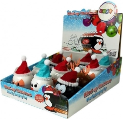 Le coffret contient 12 pièces : 3× pingouin avec bonnet rouge, 3× bonhomme de neige avec bonnet bleu, 3× Père Noël avec bonnet rouge et 3× renne. Les jouets ont une taille compacte d’environ 7 cm, sont légers, sûrs et adaptés aux enfants à partir de 3 ans (CE, EN 71).