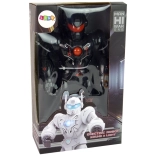 Robot noir interactif pour enfants offrant une marche avant, des effets lumineux et des sons de tir qui stimulent l’imagination et développent les capacités de coordination. Construction durable, look moderne et design sécurisé pour des heures de jeu captivant.