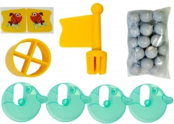 - 4 figurines de pingouin, pièces d’iceberg (4 pistes), plateformes rotatives, boules de neige, petit drapeau, autocollants, accessoires
