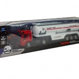 Nous présentons une citerne télécommandée qui offre aux enfants la possibilité d’explorer le monde des véhicules de chantier dans le confort de leur jeu. Le véhicule est équipé de roues en plastique à bande de roulement, ce qui permet une utilisation sur différentes surfaces. La cabine rouge avec carrosserie blanche, complétée par des détails noirs contrastés et des autocollants caractéristiques, apporte un aspect réaliste.