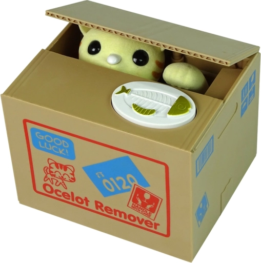Avec ce jouet génial, votre enfant apprendra à économiser de l’argent de manière ludique. En appuyant sur le bouton, un mécanisme s’active : le chat soulève le couvercle de la tirelire et tire les pièces à l’intérieur avec sa patte.